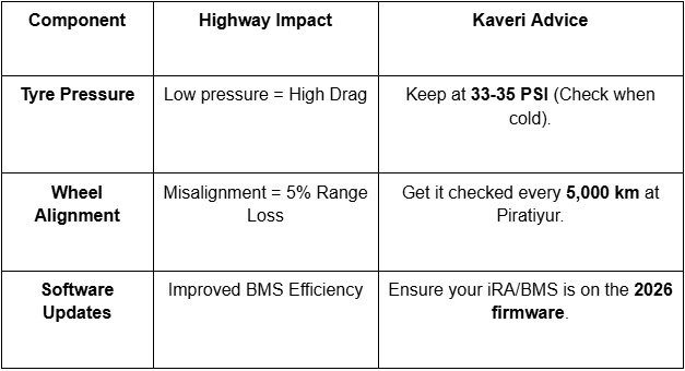 Whether you’re cruising down the Chennai-Trichy Highway (NH38) or heading towards Dindigul, highway driving is the ultimate test for an EV’s range. While the ARAI numbers look great on paper, real-world highway range depends on how you “play the wind.”
