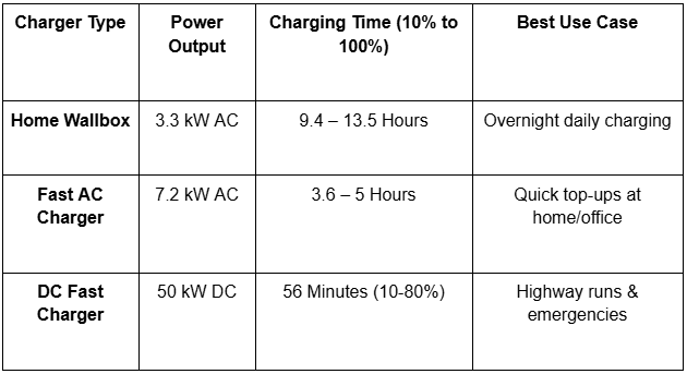 The Tata Punch EV comes with two battery options: the Medium Range (25 kWh) and the Long Range (35 kWh). Understanding your charging options is the first step to maximizing your 315 km to 421 km range.