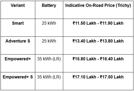 Expert Note: “With the 2026 green mobility incentives in Tamil Nadu, the Punch EV now offers an effective running cost of less than ₹1 per kilometer, making it the smartest choice for Trichy families.”